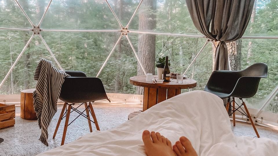 Уютные купольные дома с панорамным видом на лес расположены в комфортном отдалении друг от друга. Все здесь создано для приватного и уединенного отдыха.